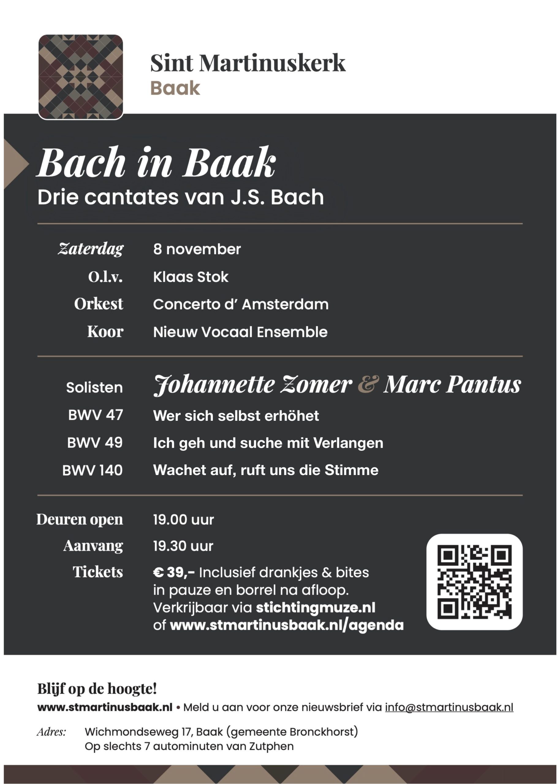 3 Bachcantates in Baak o.l.v. Klaas Stok, met Johannette Zomer en Marc Pantus