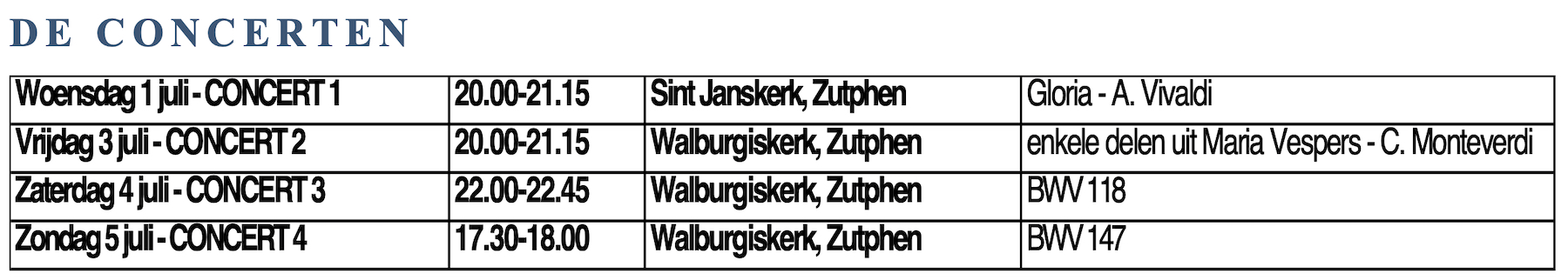 Onder leiding van dirigent Rob Vermeulen en zijn studenten koordirectie van de HKU bereiden we ons in januari voor op deelname aan het Internationaal Barok Festival Zutphen, dat van 1 t/m 5 juli 2026 plaatsvindt.